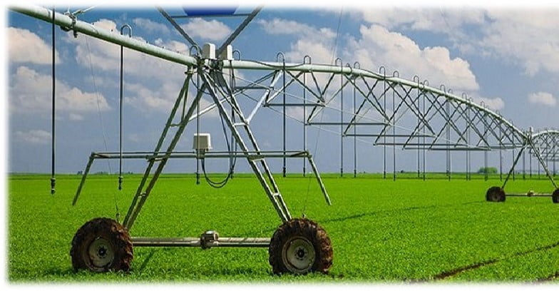 دراین روش از آبیاری، آب از منبع خود توسط پمپ های با فشار،به داخل لوله های توزیع آب وارد می شود و در قسمت های مورد نظر توسط نازل ها روی زمین زراعی توزیع می گردد.